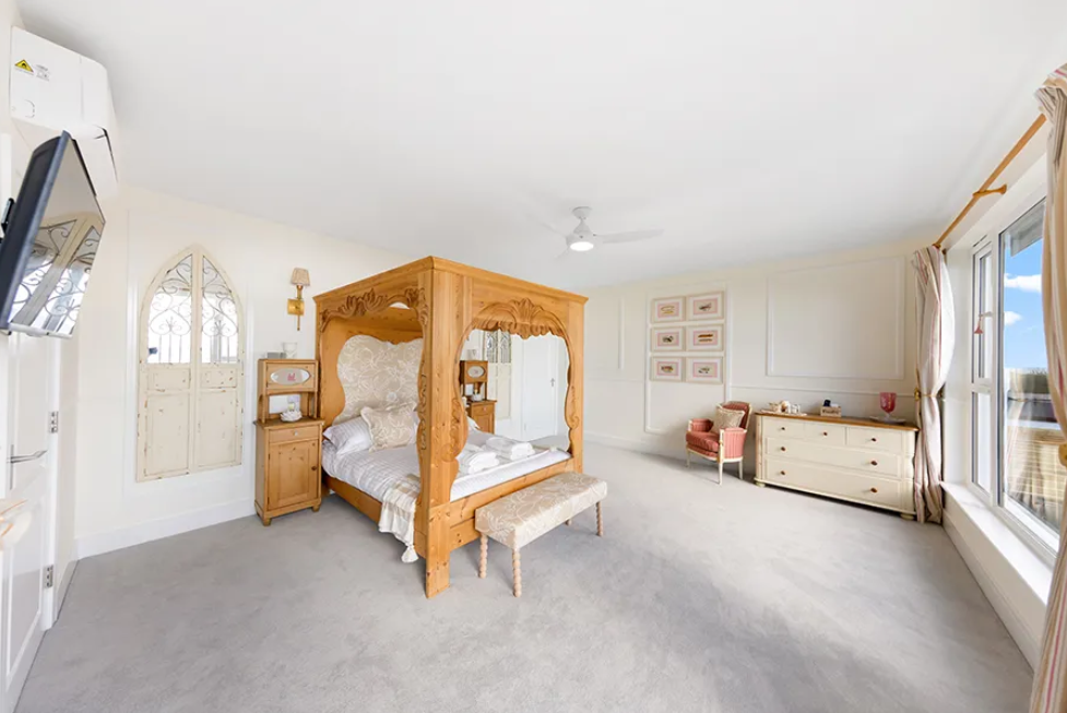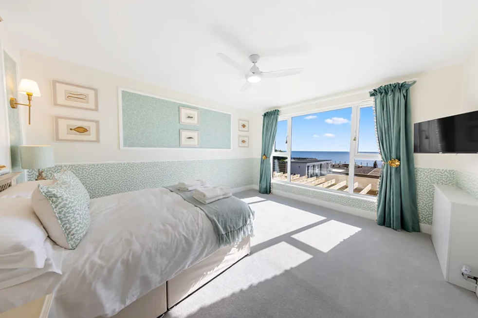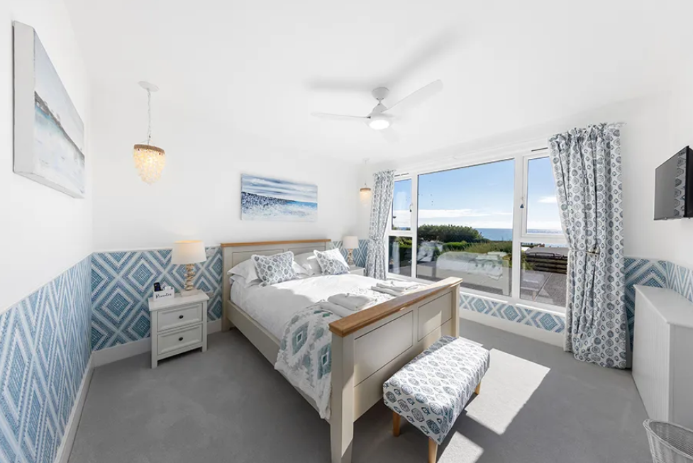 King or Queen bed with sea views and luxury bed linen.